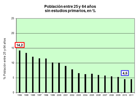 | Población entre 25 y 64 años sin estudios primarios |