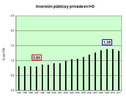 "públicas y privadas" en I+D en relación al PIB (%) |