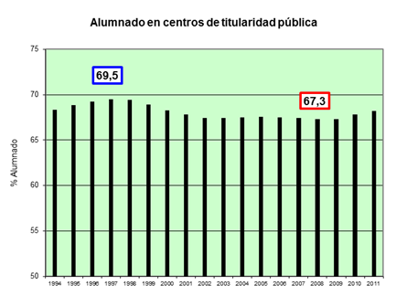 Dato en rojo: menor alumnado en centros de titularidad pública. |