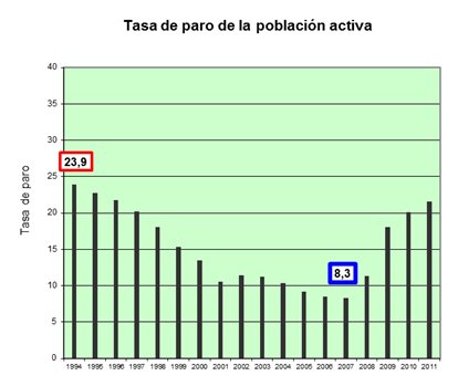 Tasa de paro de la población activa en España |