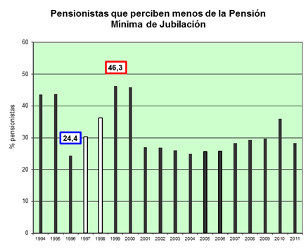 Pensionistas que perciben por debajo de la Pensión Mínima de Jubilación