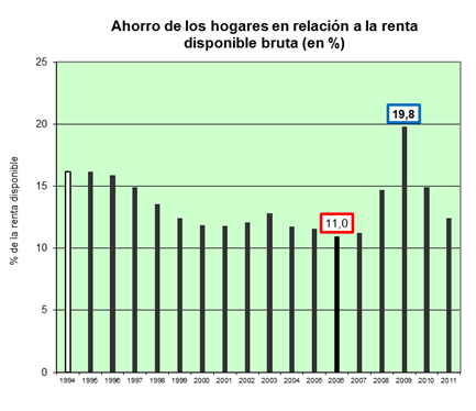 Dato en azul: mayor proporción de ahorro en relación a la renta disponible. |