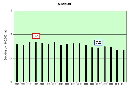 Dato en azul: menor tasa de mortalidad por suicidio. |