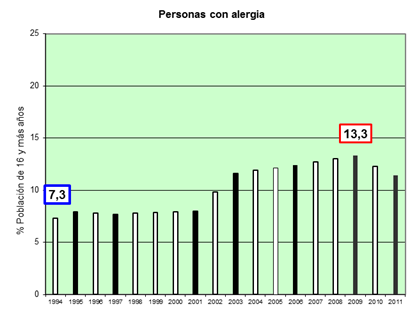 gráfico en blanco): 1994, 1996, 1998-2000, 2002, 2004-2005, 2007-2011, 2013 y