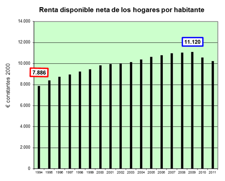 Dato en azul: mayor renta disponible neta de los hogares por habitante. |