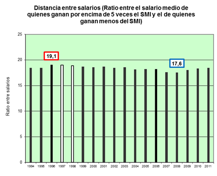 Porcentaje del PIB a coste de los factores que se distribuye bajo la forma de salarios. Este cálculo incorpora sólo el reparto entre ganancias empresariales y salarios. Ver P.7 Gross Domestic Product (labor ost), 7.6. Adjusted Wage Share (ALCD2).