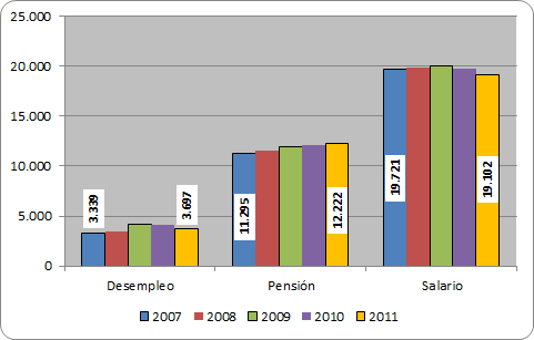 Fuente: AEAT, Mercado de trabajo y pensiones en España, 2011. Elaboración de Colectivo Ioé.